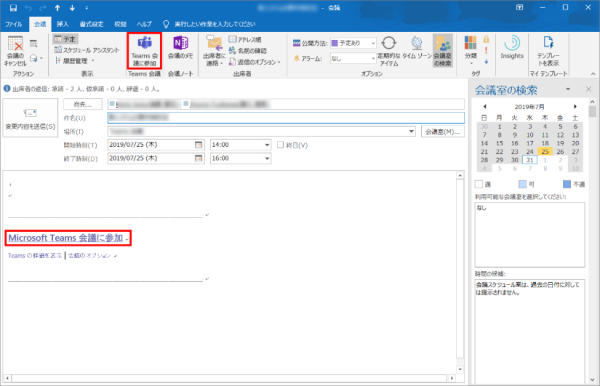 - ②メール文面内のURL「Microsoft Teams会議に参加」をクリックします。