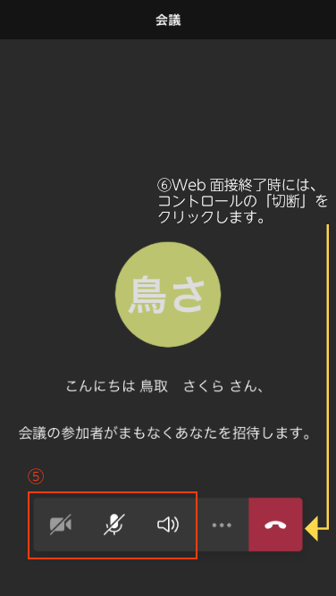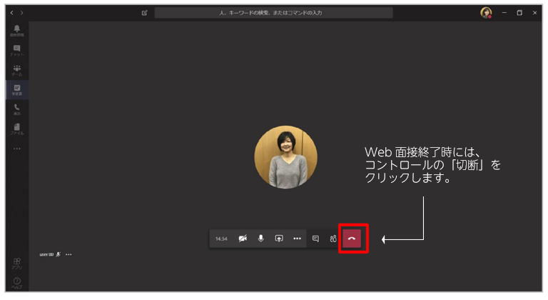 - ⑤Web面接終了時には、コントロールの「切断」をクリックします。